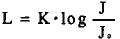 Согласно закону Вебера-Фехнера, громкость некоторого звука будет пропорциональна логарифму отношения его силы J к силе того же самого звука на пороге слышимости J0: