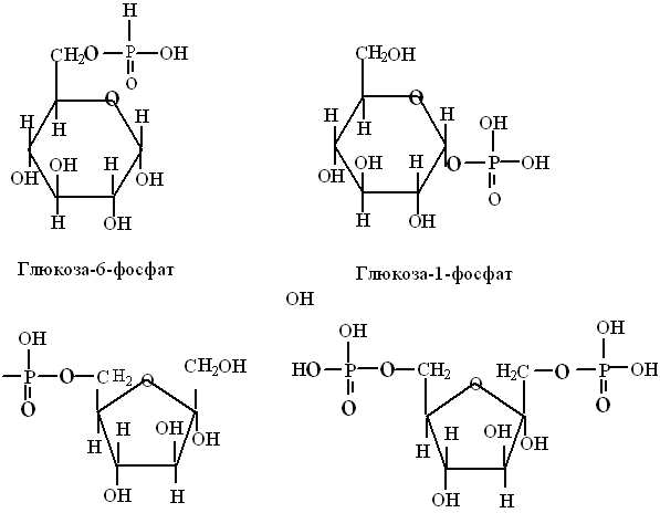Таким образом, циклические формы моносахаридов приобретают биологически реактивную гидроксильную группу при С1 или С2 атоме углерода, которая называется гликозидным гидроксилом. Она играет важную роль в химических превращениях этих моносахаридов, в частности, участвует в образовании ди- и полисахаридов, фосфорных эфиров, например: