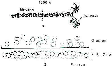 Рис.1. Строение актина и миозина.