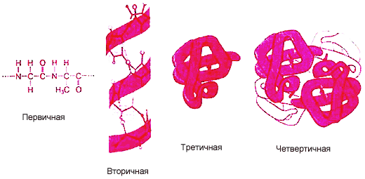 Рис.4. Уровни организации белковой молекулы.