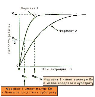Рис.5.Зависимость скорости реакции от концентрации субстрата