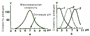 Данная зависимость была установлена свыше 50 лет назад. Для каждого фермента существует оптимальное значение рН среды, при котором он проявляет максимальную активность. Большинство ферментов имеет максимальную активность в зоне рН поблизости от нейтральной точки. В резко кислой или резко щелочной среде хорошо работают лишь некоторые ферменты.