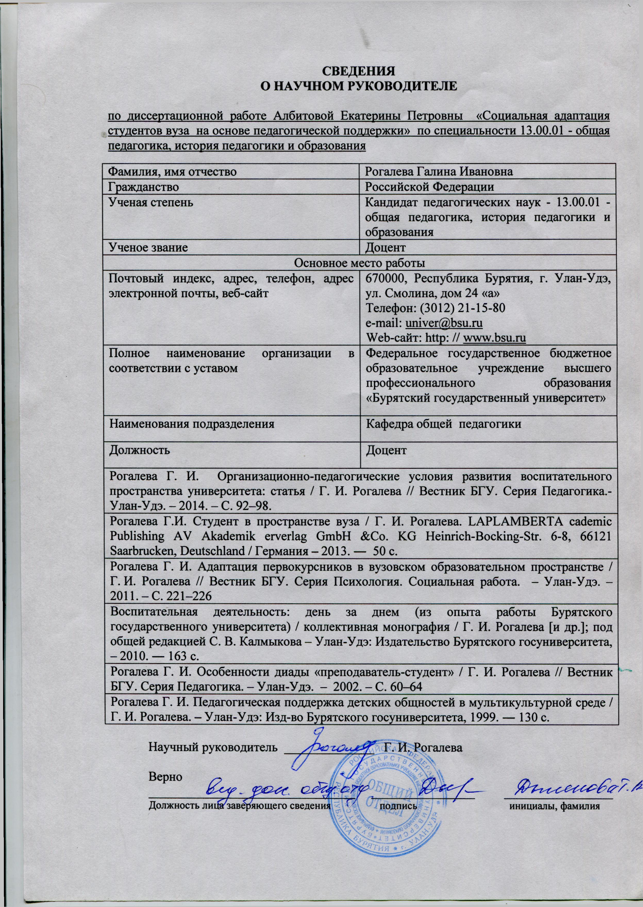 4. Разместить объявление о предстоящей защите, автореферат диссертации, отзыв научного руководителя на сайте ФГБОУ ВПО «Бурятский государственный университет».