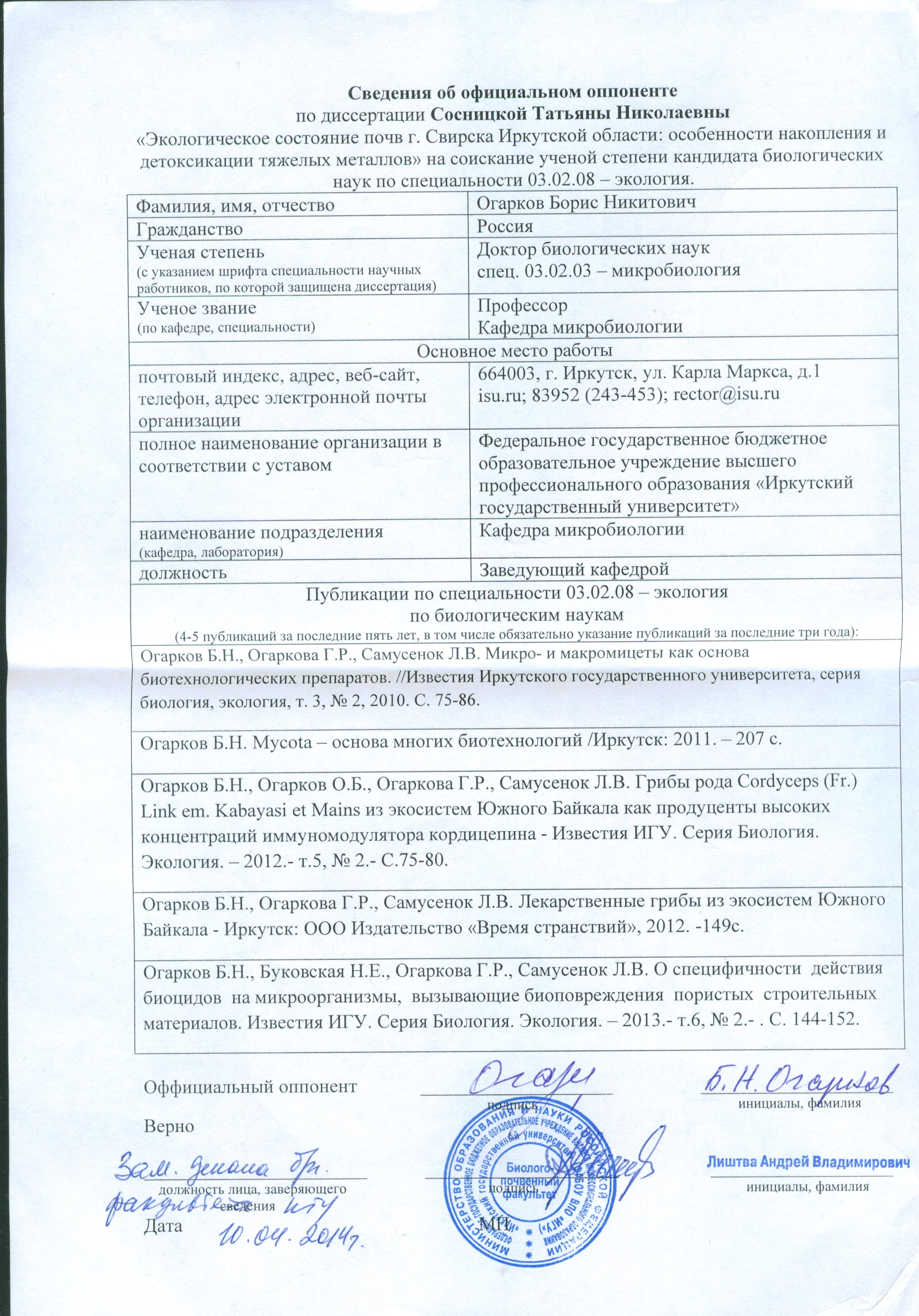 Диссертационный совет Д 212.022.03 по защите диссертаций на соискание ученой степени доктора наук при Бурятском государственном университете на заседании от «21» марта 2014 г., протокол № 3/14, принял решение: