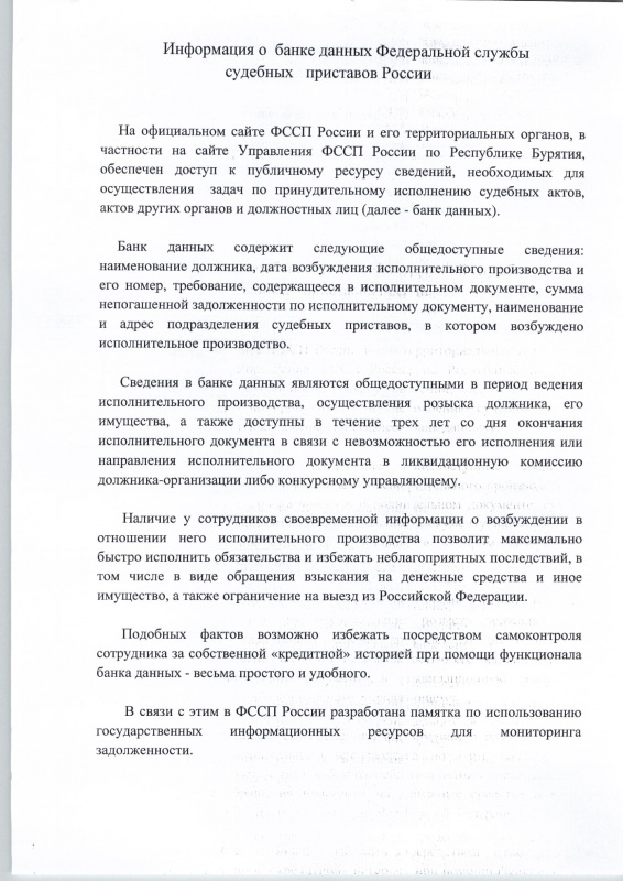 Памятка ФССП по использованию государственных информационных ресурсов для мониторинга наличии у сотрудников исполнительного производства