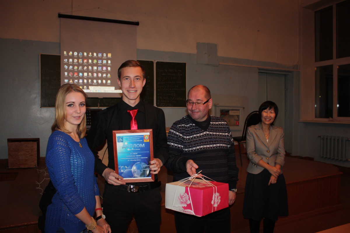 Студенты политологи 4 курса Санжиев З., Батоев А., Цыденов А. блестяще продумали сценарий деловой игры «Нечестные выборы». Студенты - социологи 3 курса во главе со Степановой Дарьей очень ответственно и при этом креативно подошли к реализации подготовительного этапа игры «100 к 1», что в итоге привело к оглушительному успеху игры. Открытием для нас стали дружные студенты 1 курса политологов и социологов, которые заняли почетные 2 и 3 место в конкурсе «Лучший студент отделения политология и социология». Вновь неординарной и креативной показала себя группа социологов 4 курса представившая очень веселую презентацию Манхаевой С. Как по накатанной прошла игра «Эрудит», которую организовала и провела наша студентка – председатель СНО БГУ – Ткаченко Анастасия.
