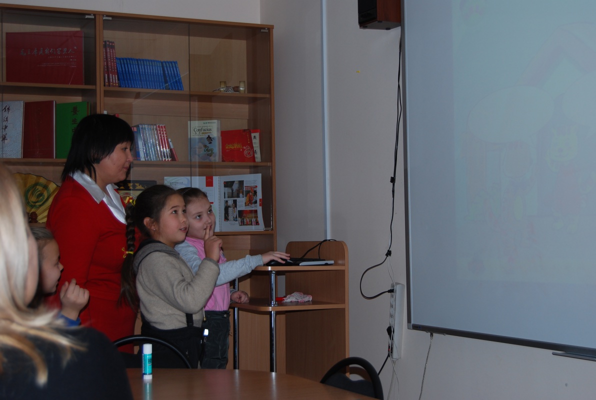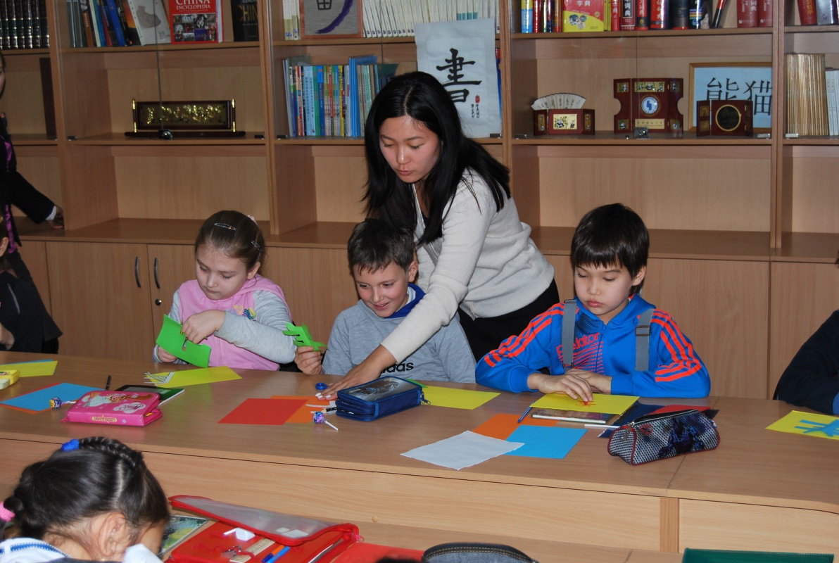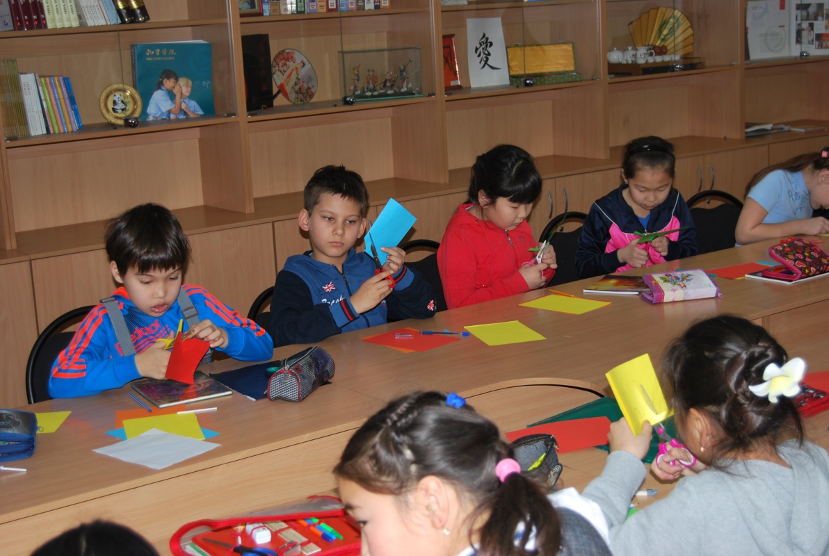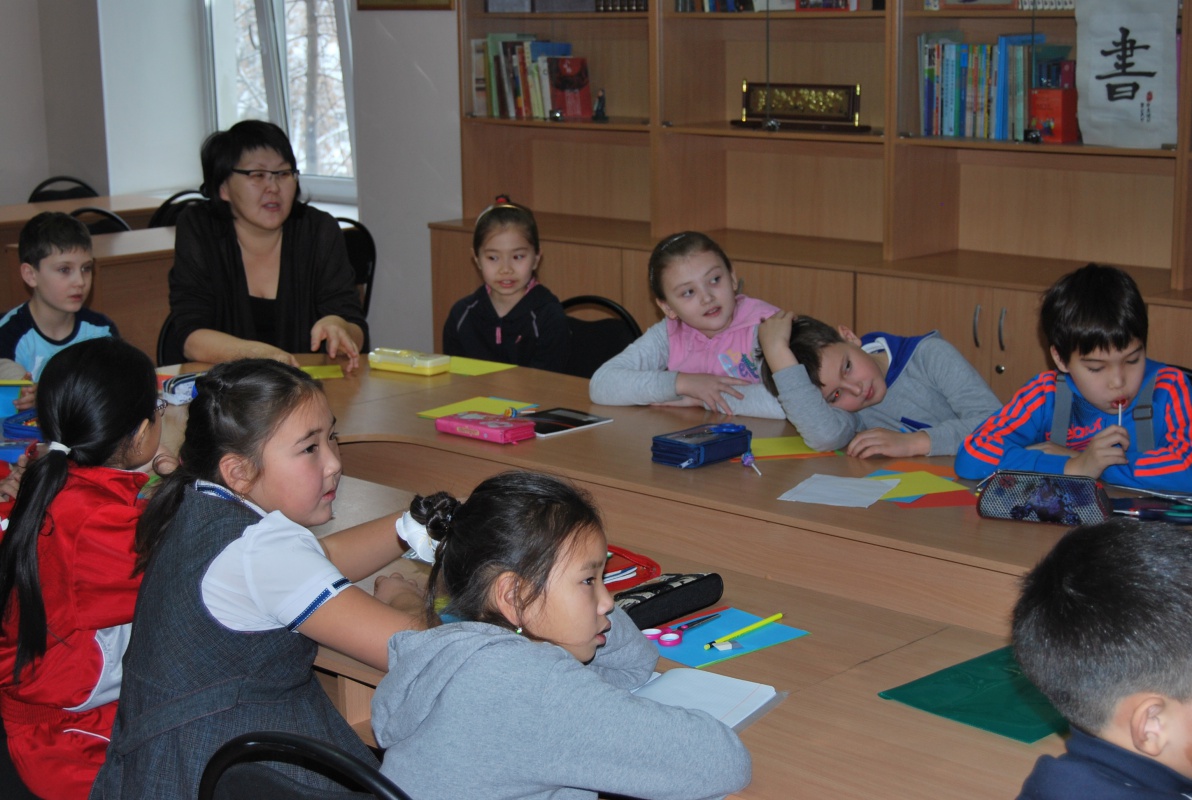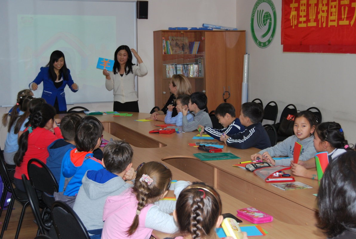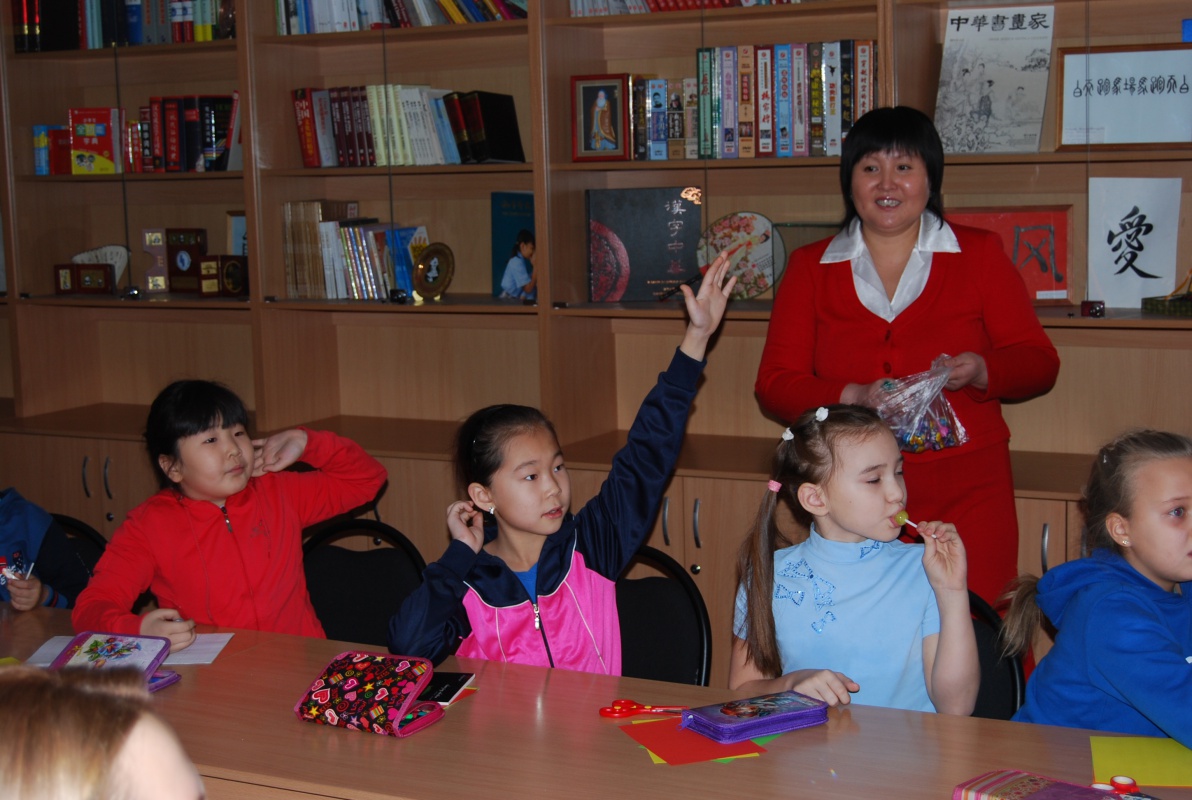 Преподаватели Института Конфуция Алсаева Валентина Федоровна, Бодоева Александра Александровна и Сунь Юйфэн провели для них занятие «Знакомство с Китаем и китайским языком». Встреча началась с викторины по культуре Китая, которая вызвала у ребят большой интерес, они активно отвечали на вопросы, правильные ответы поощрялись сладкими призами. Затем они посмотрели страноведческий ролик и обобщили свои знания о Китае. Самым интересным моментом стал этап урока в интерактивной форме, на котором школьники научились приветствовать и прощаться по-китайски. Кроме того, ребята смогли ознакомиться с искусством вырезания из бумаги.