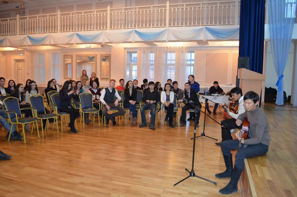 Встреча была разделена на две части: выступления по заявкам и в стиле"Свободный микрофон". Русские,бурятские и даже песни на филиппинском языке, исполненные нашими иностранными друзьями, мы смогли услышать под звон гитар . От организаторов и спонсоров данного вечера, Федерации студенческого самоуправления и Профкома БГУ, участникам были вручены памятные подарки.