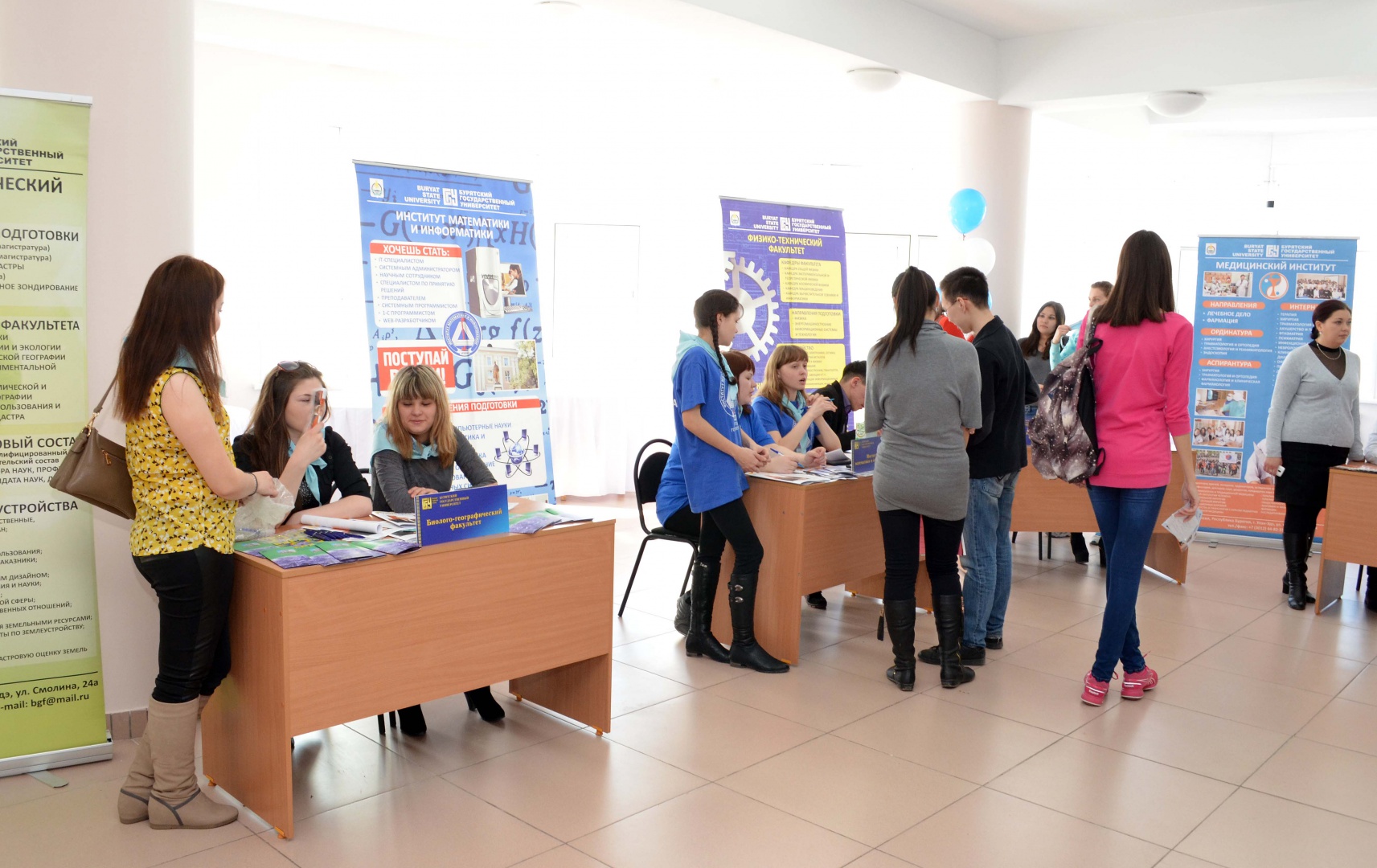 В холле бального зала состоялась презентация всех факультетов/институтов университета, колледжа, подготовительного отделения. Работали творческая лаборатория студентов кафедры журналистики и рекламы, студенческий профком, группа «Профориентатор». ФССУ провела викторину, игры, тренинги, в которых выпускники школ и СПО приняли активное участие. Также Научная библиотека провела интересную экскурсию для участников.