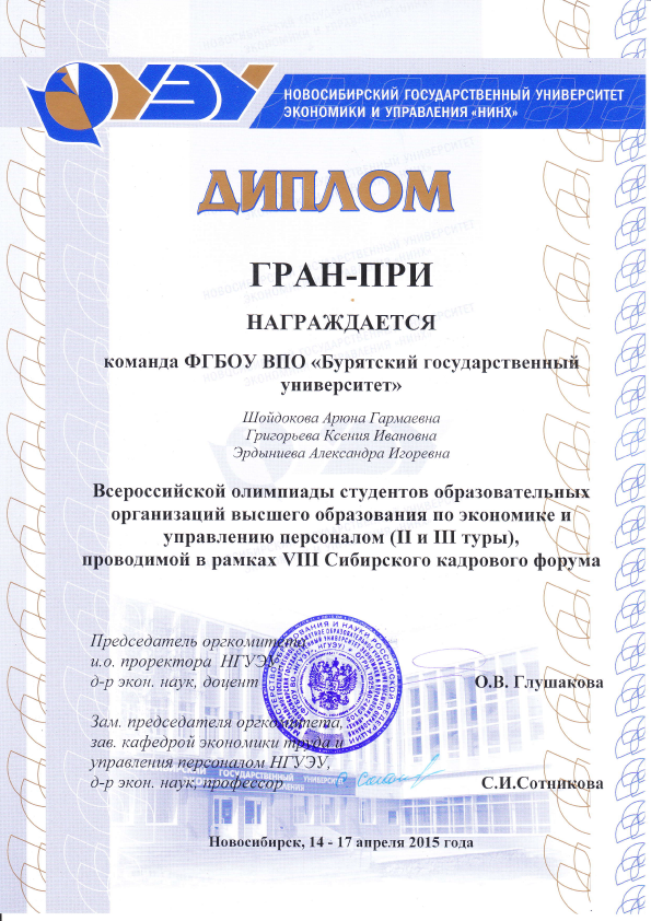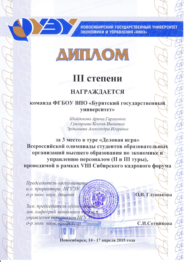 В 2015 году команду Бурятского государственного университета представляли студенты, обучающиеся по направлению «Управление персоналом»: