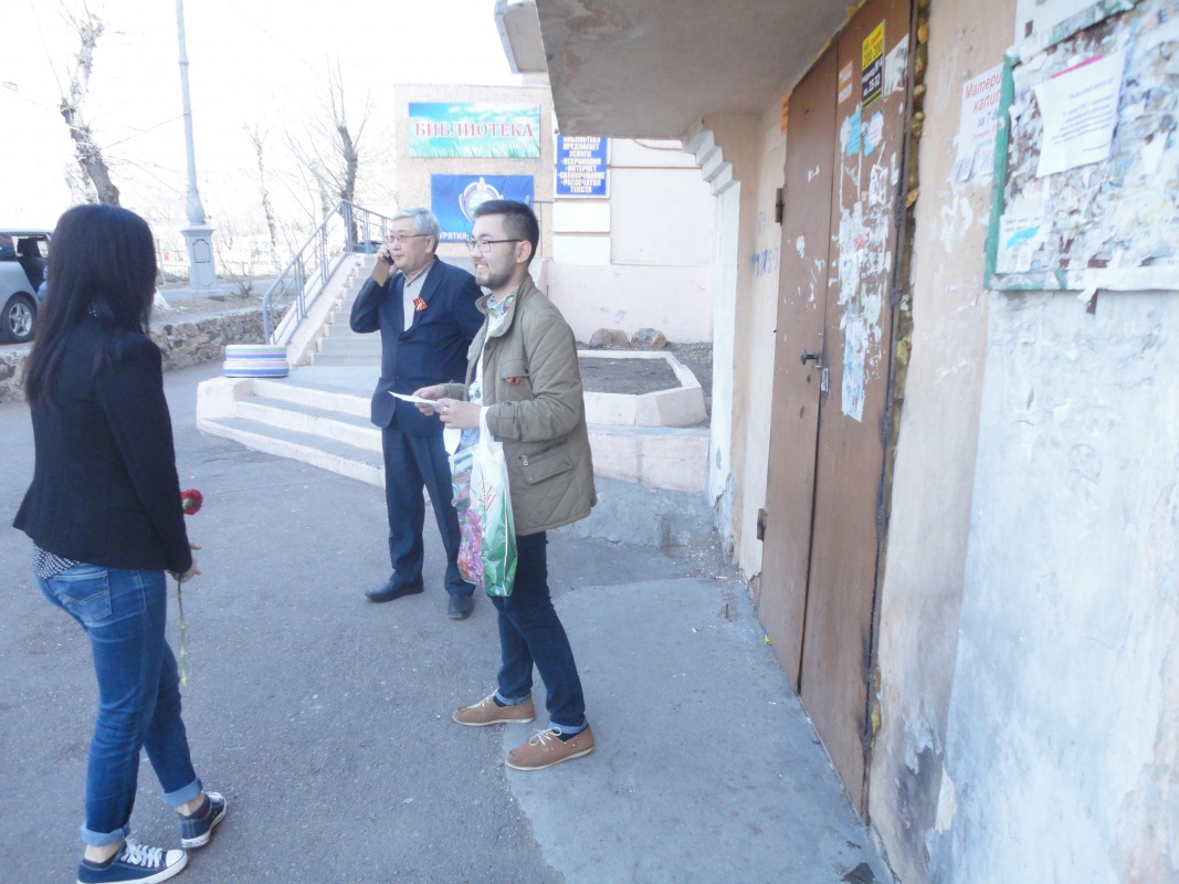 В эти дни преподаватели кафедры политологии и социологии и студенты-политологи посетили и поздравили ряд ветеранов Великой Отечественной войны на дому. На снимке: профессор Э.Д.Дагбаев, студенты-третьекурсники Г.Юможапов, С.Бадмева, Б.Лодонов.