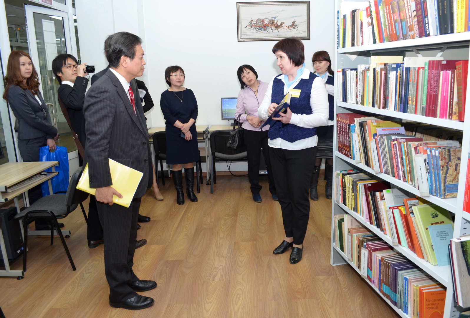 Г-н Ямамото провел встречу с и.о. ректора БГУ Николаем Мошкиным, со студентами Восточного института, а также ознакомился с работой научной библиотеки БГУ.