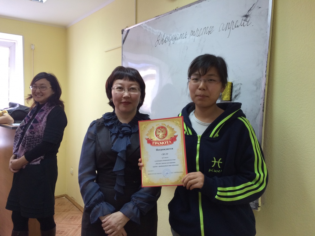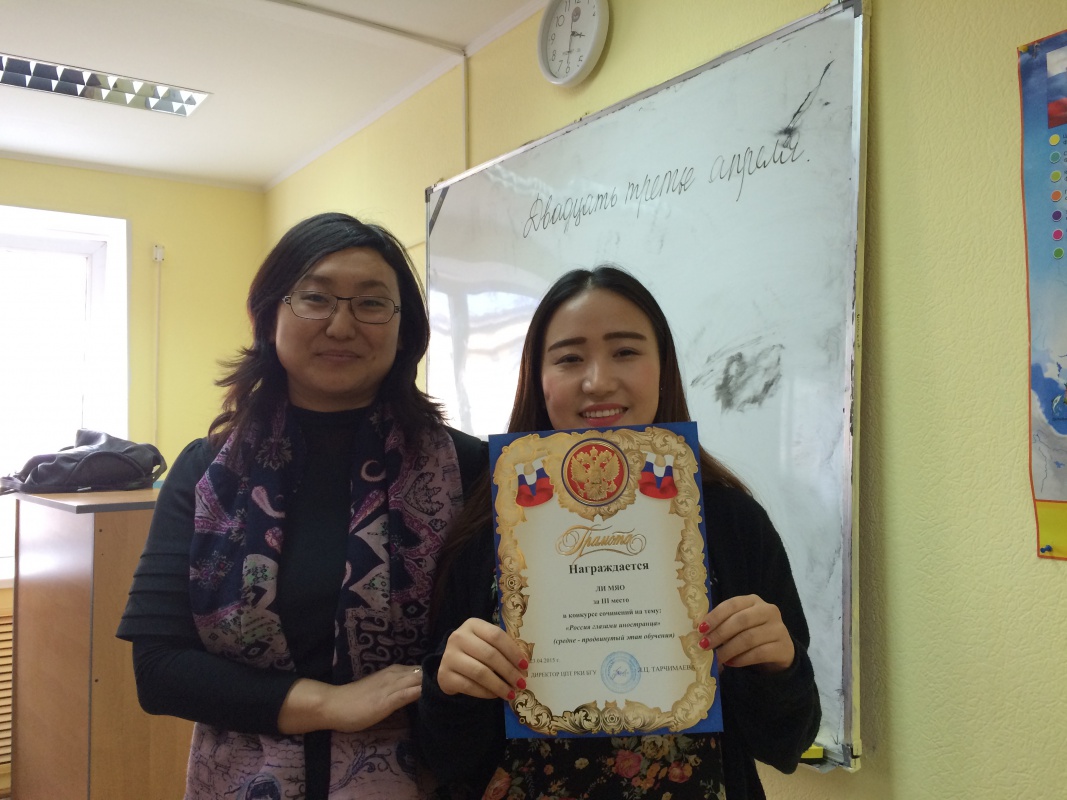 II место – Гэрэл Майцэцэг (Монголия, слушатель курсов РКИ)