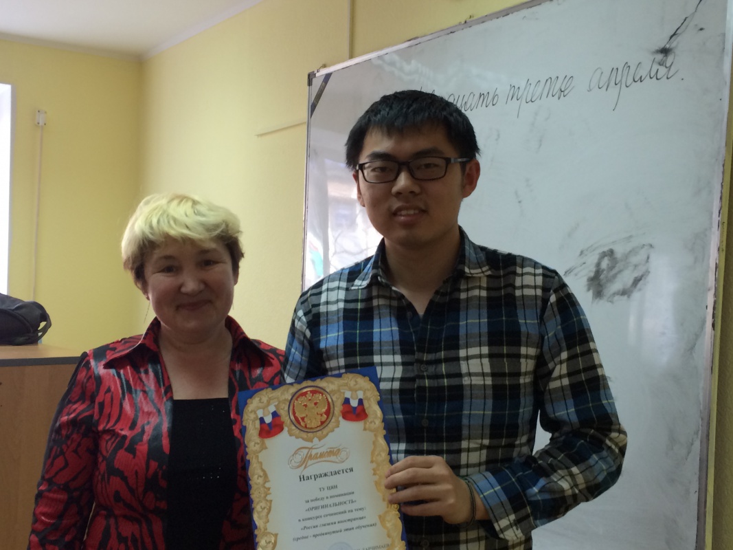 III место – Чэнь Юэ (КНР, слушатель курсов РКИ)