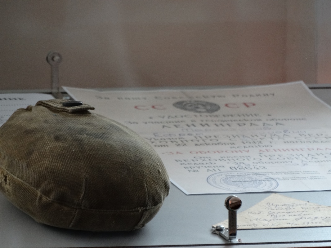 Достойное место в экспозиции заняли документальные свидетельства и предметы военных лет, принадлежащие профессору, доктору исторических наук, ветерану Великой Отечественной войны Ефрему Егоровичу Тармаханову. Директор Института непрерывного образования БГУ Марина Геннадьевна Цыренова предоставила артефакты из семейного архива – письма с фронта, читая которые соприкасаешься с живой историей.