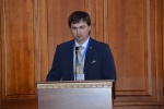 После выступил один из организаторов научного форума - Аксенов Максим Олегович, доцент, докторант БГУ. Он также поблагодарил всех тех, кто принимал участие в проведении этого симпозиума. Рассказал, как долго он и Штефан К. шли к тому, чтобы организовать международный научный симпозиум.