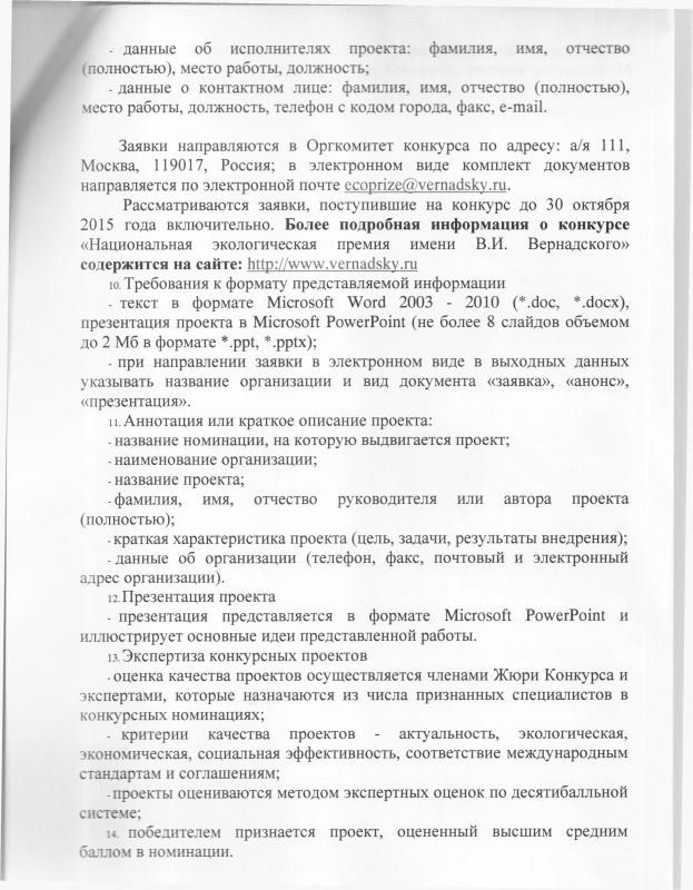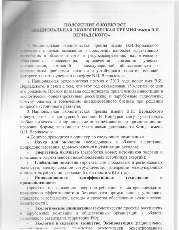 Положение о конкурсе "Национальная экологическая премия имени В.И. Вернадского"