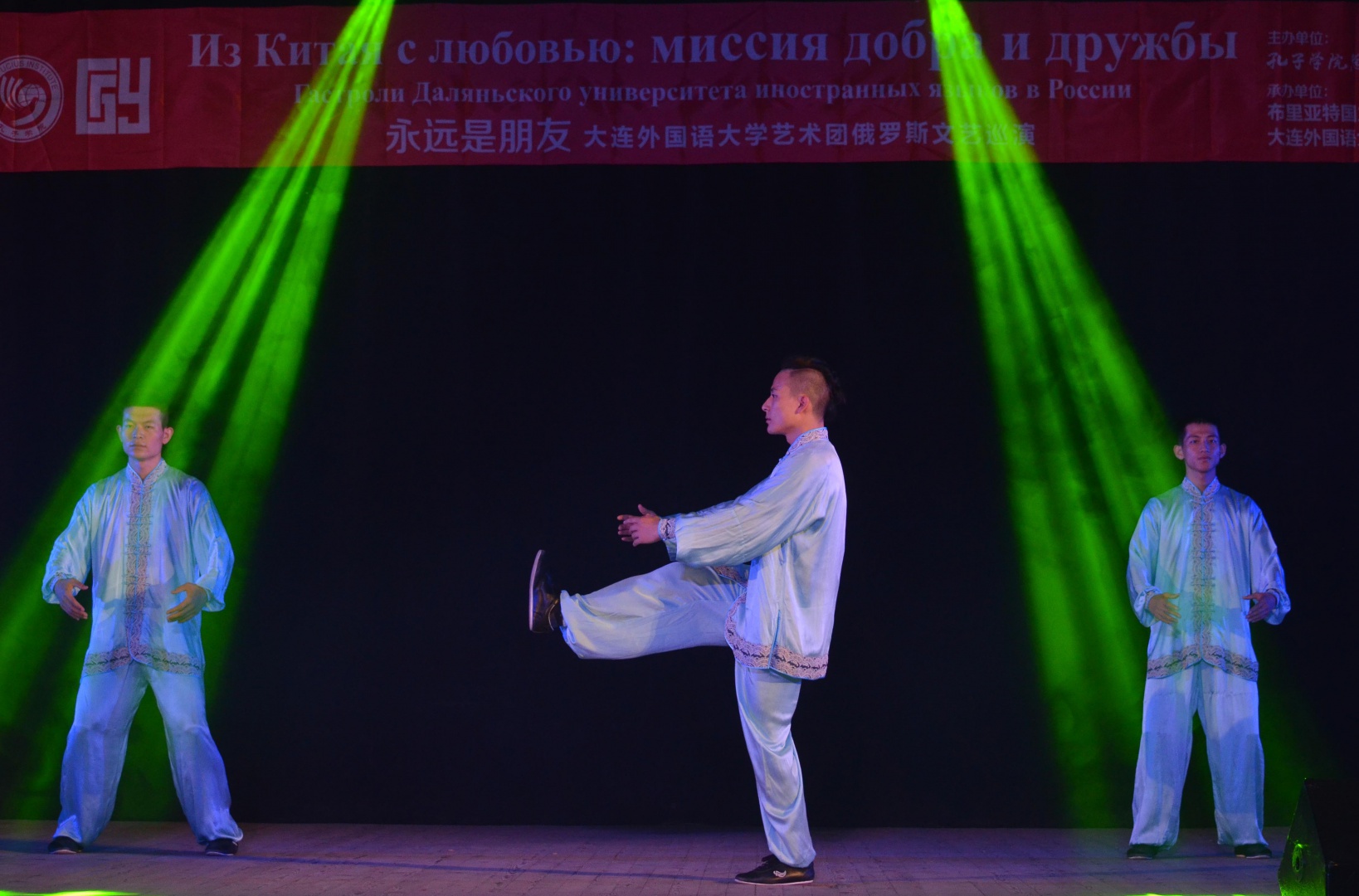 Актовый зал Бурятского госуниверситета был полон, зрители с радостью принимали каждый номер студентов из Даляня. В программе были традиционные танцы, представление национальных костюмов, каллиграфии, вырезания из бумаги, соло на китайских народных инструментах, представления ушу и оздоровительной дыхательной гимнастики «цигун» и другие номера.