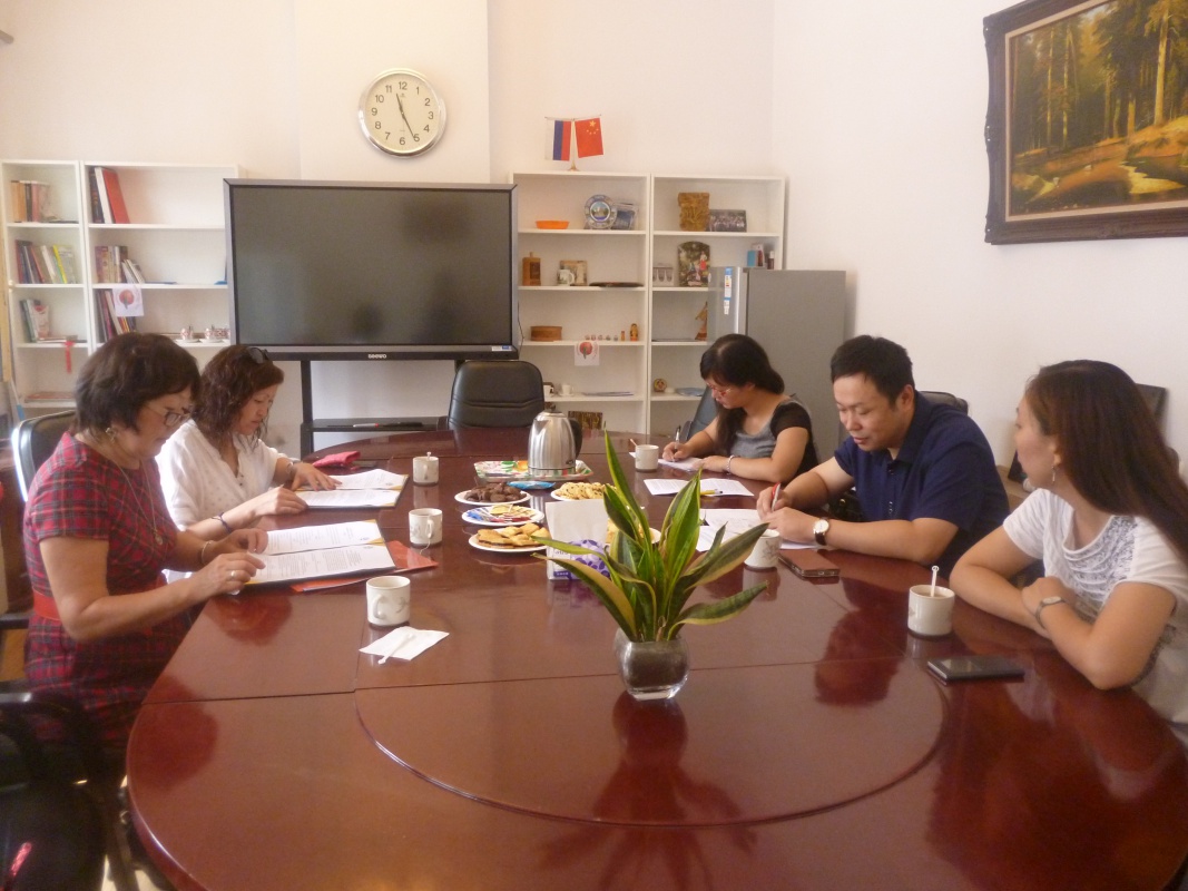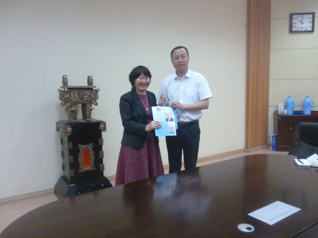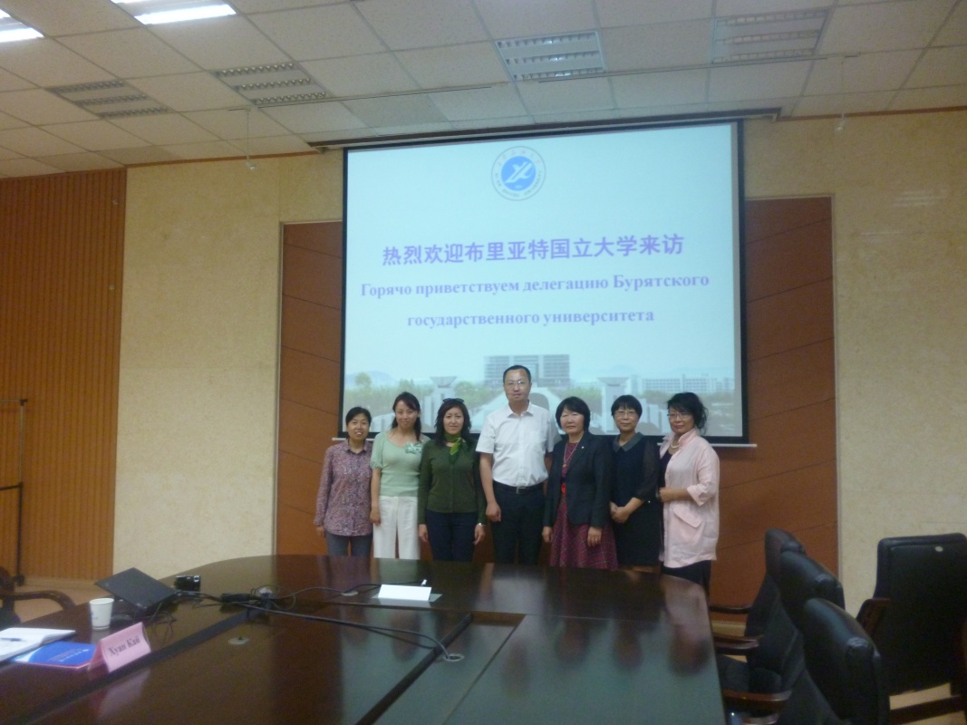 С 19 сентября по 26 сентября директор Института филологии и массовых коммуникаций (ИФМК) Дашинимаева П.П., заведующая кафедрой русского языка как иностранного (РКИ) Улазаева Г.В. находились в командировке в г.Сиань, г.Тяньцзинь (КНР). Были запланированы следующие мероприятия: встреча с руководством Сианьского нефтяного университета для обсуждения вопросов по дальнейшему сотрудничеству в сфере обмена студентами, установлению новых форм сотрудничества, встреча со студентами ИФМК и ВИ, находящимися на стажировке в данном университете (г.Сиань); переговоры с руководством Тяньцзиньского университета иностранных языков (ТУИЯ) относительно установления сотрудничества по программам академической мобильности, двойного диплома; участие в международной научной конференции «Современные информационные технологии в преподавании русского языка как иностранного» (г.Тяньцзинь). Все запланированные мероприятия выполнены. Подписан договор о сотрудничестве с ректором Тяньцзиньского университета иностранных языков.