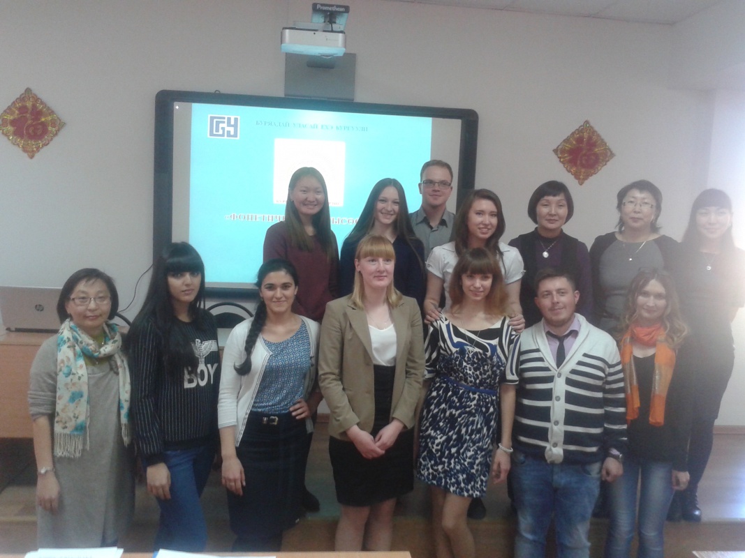 13 октября 2015 года стартовал первый конкурс в рамках университетского праздника «Дни бурятского языка» - фонетический конкурс. Конкурс проводился среди студентов, изучающих бурятский язык как второй и включал три этапа. На первом этапе членам команды необходимо было прочитать оду, посвященную 20-летию Бурятского госуниверситета. На втором этапе участники конкурса читали диалог на бурятском языке, представляющий собой жанр фольклора – жороо үгэ (скороговорка). В завершении команды исполняли песню на бурятском языке с представлением «визитной карточки» песни (информации об авторе (-ах) слов песни и композиторе (-ах), о дате создания песни, фотография исполнителей песни, кому была посвящена песня и т.д.)