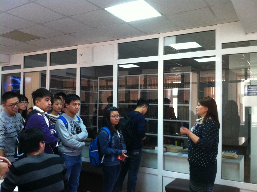 Преподаватели кафедры русского языка и общего языкознания, курирующие китайских студентов, помогают им адаптироваться к новой учебной и культурной среде. Трудно представить учебный процесс без работы в библиотеке, поэтому куратором Л.Н. Омельченко, доц. кафедры РЯиОЯ, была организована экскурсия в Научную библиотеку БГУ, которая располагает современными информационными технологиями.