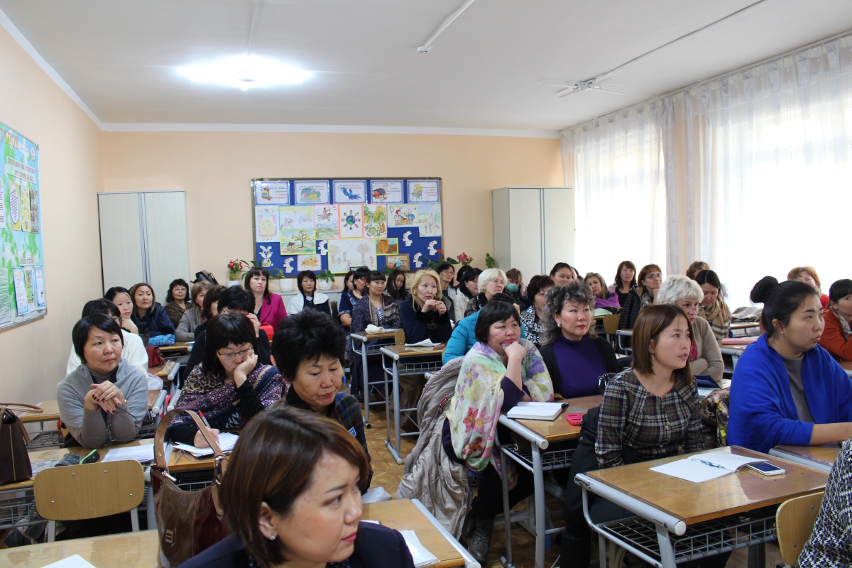 Общие и установочные лекции для учителей всех предметов провела Цыренова М.Г., к.п.н., доцент, директор ИНО БГУ. Затем учителя были распределены на группы. Самая многочисленная группа – учителя начальных классов и воспитатели группы продленного дня (56 человек) работали 2 напряженных дня под руководством учителей высшей категории Лингвистической гимназии № 3, г. Улан-Удэ - Альчихановой Аллы Сергеевны и Доржиевой Евгении Васильевны.