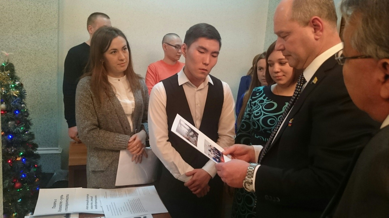 7 декабря состоялось торжественная церемония закрытия проектов «350 добрых дел любимому городу» в здании администрации г. Улан-Удэ. Студенты сделали небольшую выставку по реализации гранта «350 уроков патриотизма» и сумели продемонстрировать мэру г. Улан-Удэ А.М. Голкову и другим присутствующим свои достижения.