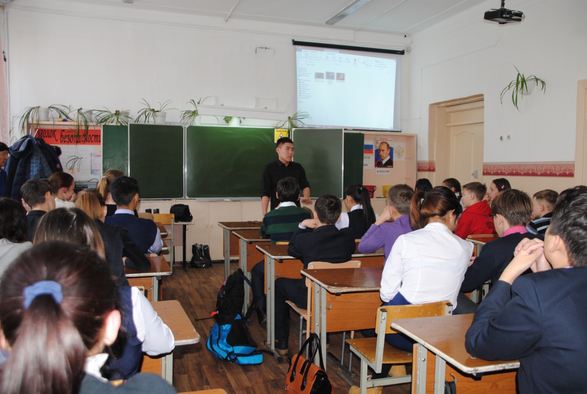 С октября 2015 года студенты Исторического факультета начали давать «Уроки патриотизма» в школах г. Улан-Удэ. Всего было проведено около 100 уроков для учащихся 7-11 классов в средних школах №№ 3, 8, 9, 18, 26, 40, 43, 46, 25, 5, 56, 63 и в Педагогическом колледже. По нашим подсчетам было охвачено около 2000 человек.