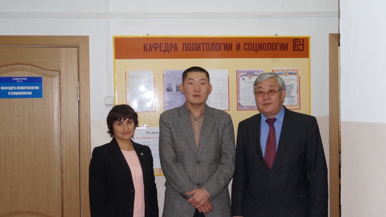 Коллектив кафедры политологи и социологии от всей души поздравляет Халбашкеева Андрея Валентиновича с успешной защитой кандидатской диссертации «Политические ценности студенческой молодежи России (на материалах Республики Бурятия)», научный руководитель д.соц.н., проф. Дагбаев Э.Д. Желаем дальнейших успехов в научной деятельности и новых свершений!