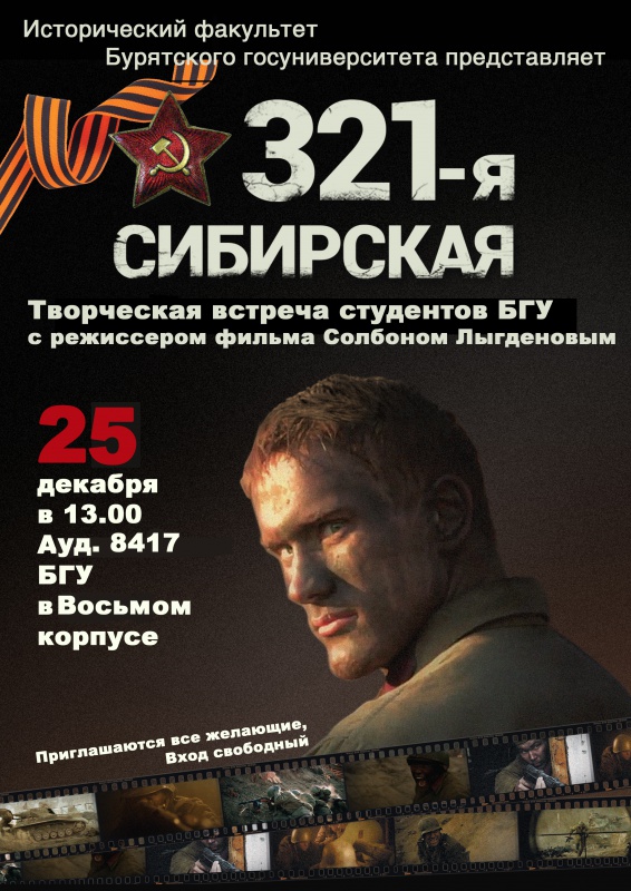 25 декабря в 13:00 в 8 корпусе БГУ (ауд. 8417) состоится творческая встреча студентов БГУ с кинорежиссером Солбоном Лыгденовым.