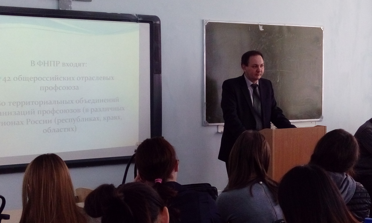 9 марта 2016 г. студенты кафедры управление персоналом Института экономики и управления встретились с Председателем Объединения организаций профсоюзов Республики Бурятия Д. В. Колмаковым