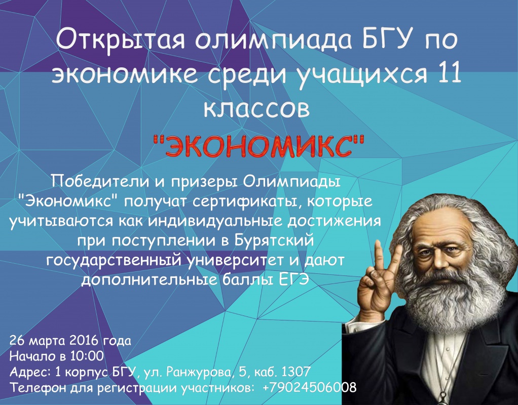 26 марта в 2016 года в Бурятском государственном университете состоится Открытая олимпиада среди учащихся 11 классов по экономике "Экономикс".