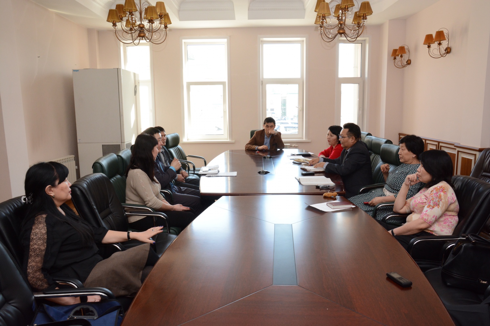 Во встрече приняли участие директор ВИ И.Г. Актамов, директор Центра сохранения и развития бурятского языка БГУ А.А. Елаев, первый заместитель директора ВИ Г-Х.Ц. Гунжитова, директор Кахинской СОШ П.Г. Барлуков, заместитель директора по УВР Кахинской СОШ Л.И. Мижитдоржиева. На встрече обсуждались вопросы развития сотрудничества между Восточным институтом и Кахинской школой по развитию бурятского языка, по совершенствованию системы обучения бурятскому языку и литературе и др. Были намечены основные направления совместной деятельности, в том числе, осуществление научно-методического руководства преподавателями ВИ, совместная организация практики студентов, научно-экспериментальная деятельность. Отметим, что в ноябре 2015 года между БГУ и Кахинской СОШ был подписан договор о сотрудничестве.