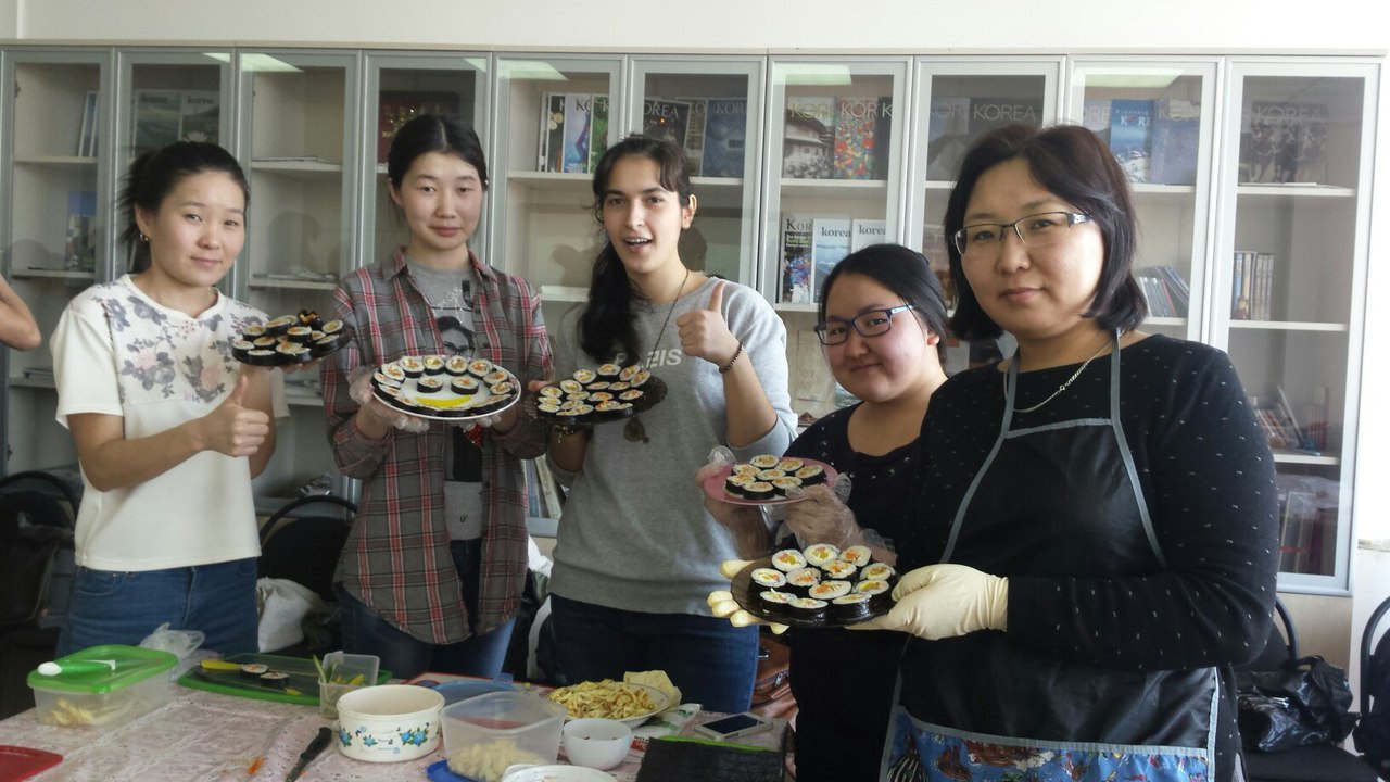 19 марта в Институте имени короля Сечжона прошло мероприятие по приготовлению корейского традиционного блюда кимпап. Кимпап - это роллы, завернутые в морскую капусту с рисом и начинкой. В мероприятии приняли участие слушатели Института имени короля Сечжона, студенты Восточного института, а также корейские студенты, изучающие русский язык.