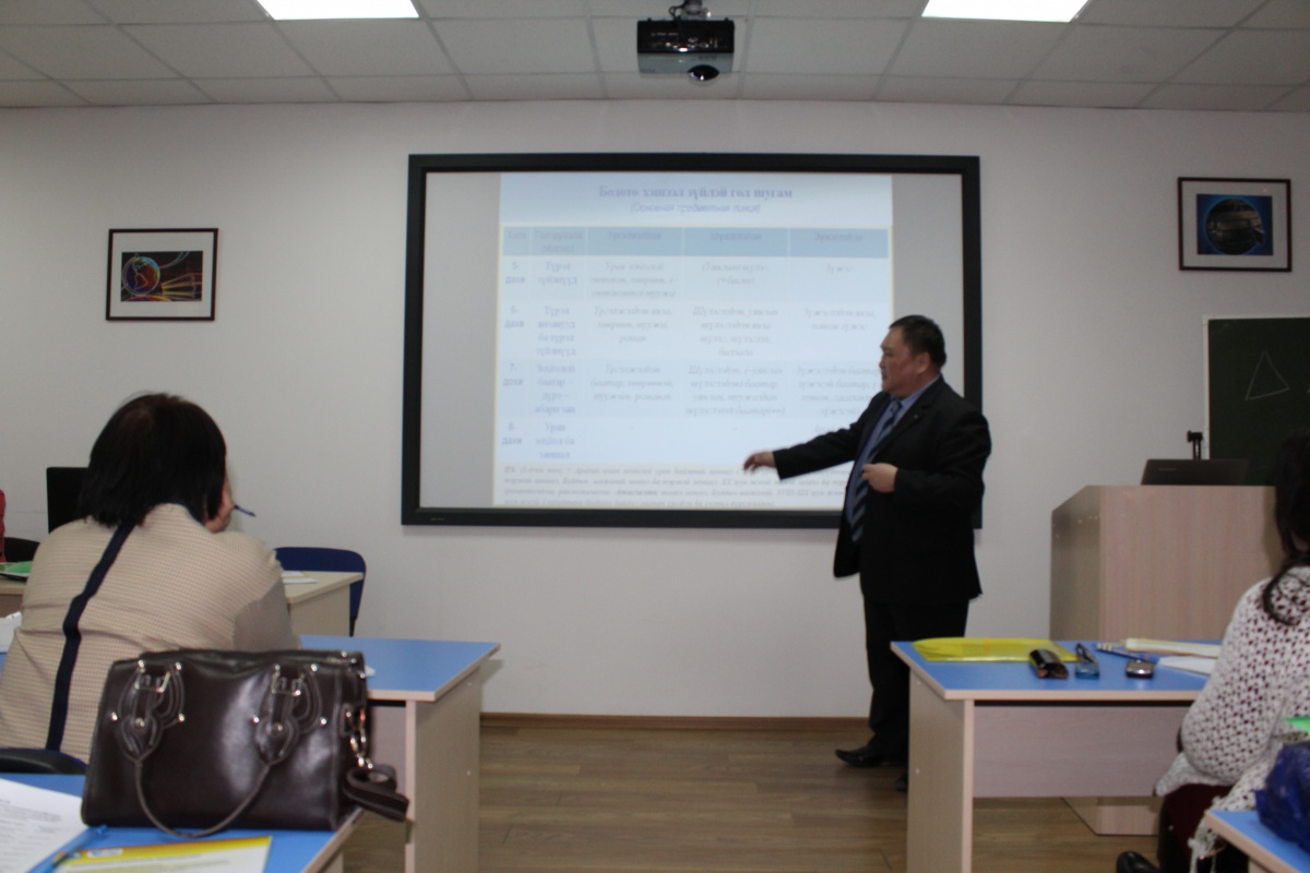 Центром сохранения и развития бурятского языка ВИ БГУ совместно с ГБУ РЦ «Бэлиг» 30 марта с.г. организован Круглый стол на тему: «Особенности изучения бурятской литературы на старшем уровне общего образования: технология организации». Приняли участие учителя общеобразовательных школ РБ, Агинского Бурятского округа Забайкальского края. Работа Круглого стола была подчинена главной цели-анализу и поиску методологических подходов к изучению бурятской литературы в основном общем, среднем (полном) общем образовании в условиях реализации ФГОС, обсуждению организационно-методических аспектов обучения бурятской литературе. Авторский коллектив учебного комплекта «Буряад литература. 11 класс» (рук-ль М.В.Батуева, методист по бурятскому языку Агинского института повышения квалификации, М.Р.Балданова, учитель бурятского языка и литературы МОУ «Судунтуйская СОШ, соавтор, Т.Т.Сыжипова, учитель бурятского языка и литературы МОУ «Ушарбайская СОШ», соавтор) ознакомил собравшихся с технологией апробации данного комплекта. Живой интерес у учителей, преподавателей вызвали проблемы структурирования и отбора содержания учебных пособий старших классов (докл. Б.Б.Бадмаев, к.ф.н., доцент кафедры бурятской филологии ВИ БГУ), адаптации учителей в условиях реализации ФГОС. С анализом промежуточных результатов и решением по доработке содержания выступила к.ф.н., доцент, и.о. зав. кафедрой бурятского языка и методики преподавания ВИ БГУ Р.С.Дылыкова.