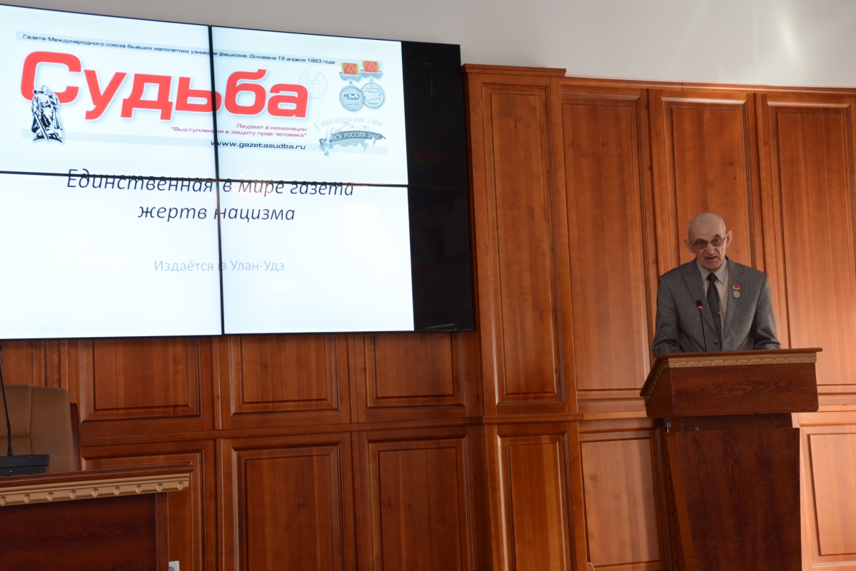 Данная газета — единственное в мире издание жертв нацизма. Издается на территории Бурятии с 1993 года и является плодом многолетнего труда Леонида Кирилловича и его единомышленников. Он рассказал о газете, прочитал воспоминания очевидцев — малолетних узников фашистских концлагерей, поделился своими мыслями о необходимости помнить, изучать историю Холокоста, что это очень важная проблема для современной молодежи.