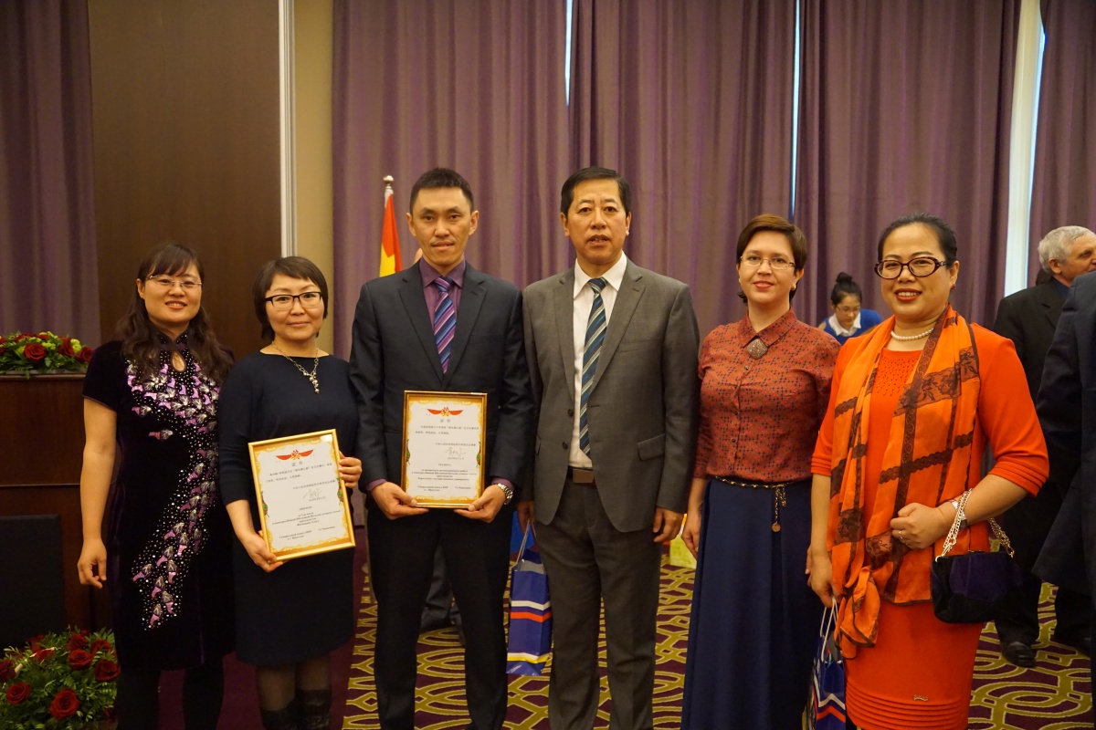 Все награды были вручены директору Восточного института И.Г. Актамову на торжественном приеме по случаю окончания срока полномочий Генерального консула Го Чжицзюня, организованном Генеральным консульством КНР 11 апреля 2016 г. в г. Иркутск. В данной церемонии в составе делегации от БГУ также приняли участие директор Института Конфуция БГУ Л.Л. Ветлужская, директор Института Конфуция БГУ с китайской стороны Чжао Сюцин, зав. кафедрой Филологии стран Дальнего Востока ВИ БГУ М.Б-О. Хайдапова, которые поздравили Генерального консула Го Чжицзюня с высокими результатами четырехлетней работы на данном ответственном посту и пожелали успехов в дальнейшей дипломатической деятельности.