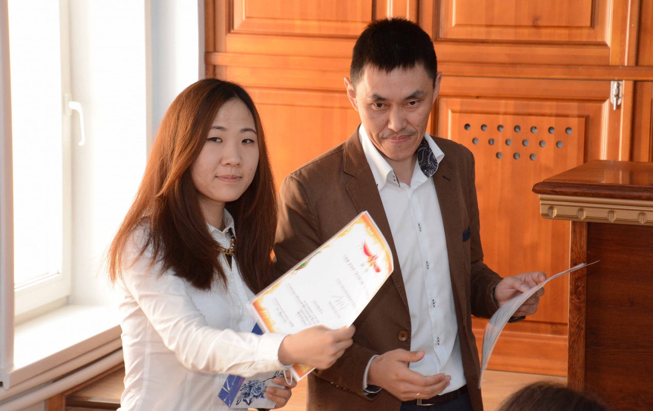 Перед научной частью состоялся приятный момент награждения победителей конкурса на лучшую статью на китайском языке «Новый шелковый путь», который проводился в марте этого года Генеральным консульством КНР в г. Иркутск. Десяти отличившимся студентам награды вручил директор Восточного института И.Г. Актамов.