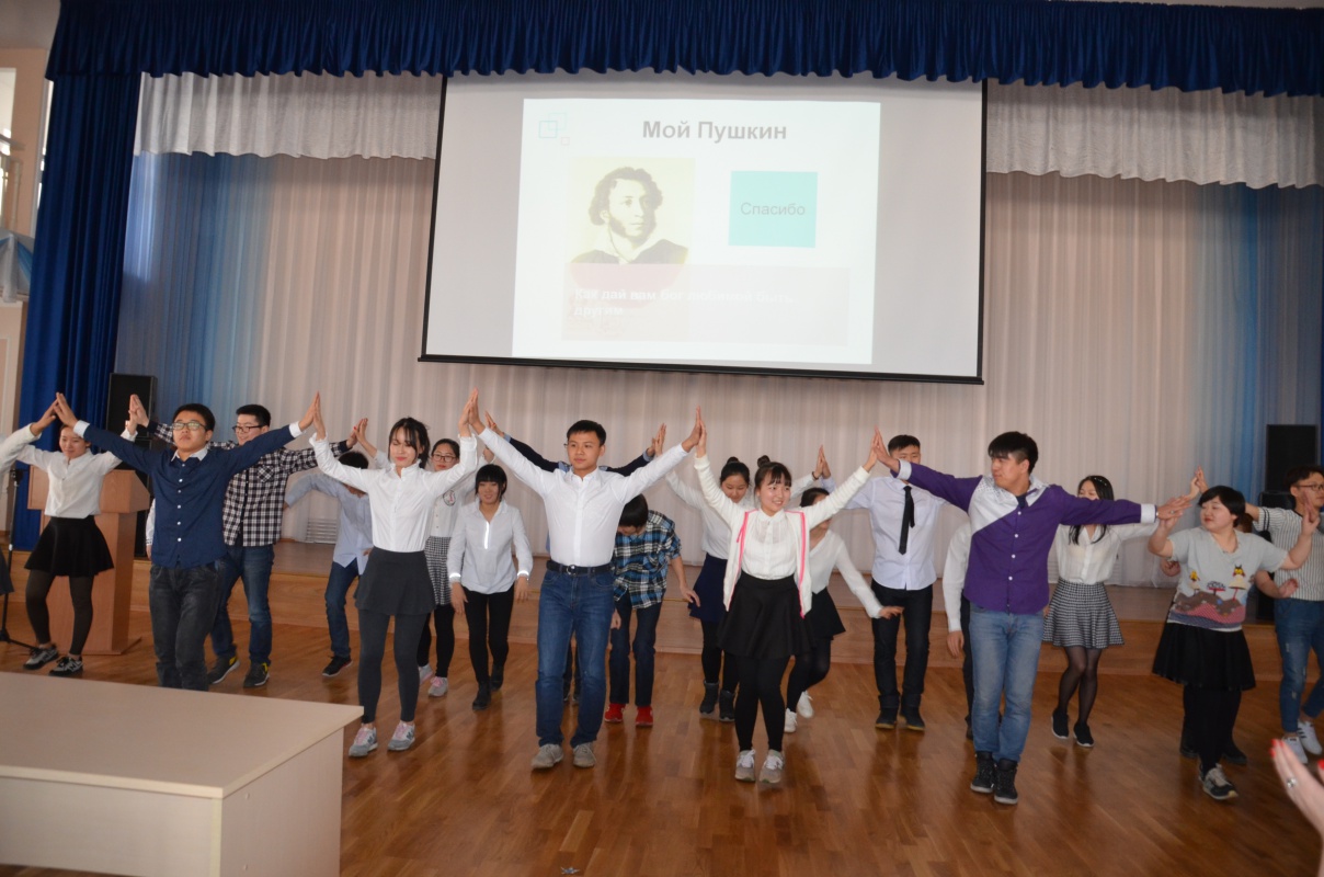 В первой части праздника прозвучали доклады китайских студентов, показавшие их степень погружения в русскую культуру, в учебный материал тех предметов, которые они изучают. В этот день все наши иностранные студенты выглядели очень красиво и торжественно. Зал был украшен стенными газетами с информацией о днях, проведенных в стенах Бурятского госуниверситета. Был подготовлен целый концерт с композициями, инсценировками известных сказок А.С.Пушкина, песнями и декламациями. Было видно, что студенты волнуются, но каждый из выступающих продемонстрировал интерес к русскому язык, трепетное отношения к культурному наследию и самобытности русских традиций.