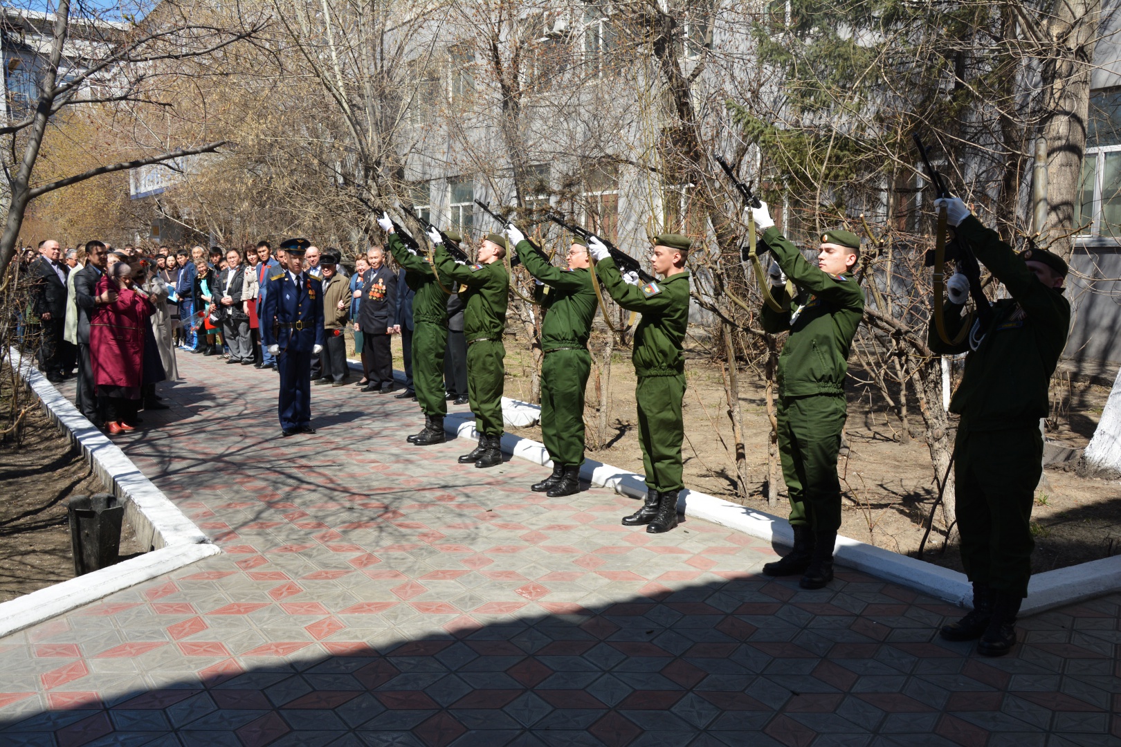 Состоялось возложение венка к мемориальной доске главного корпуса. Завершение торжественной части мероприятия ознаменовал троекратный залп.
