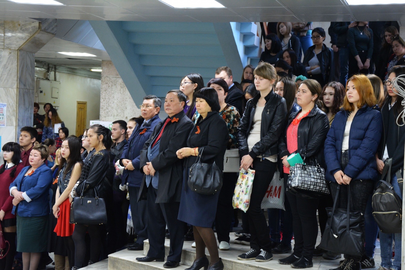 В митинге приняли участие ветераны, преподаватели, студенты. Большой холл главного корпуса нашего Университета с трудом вместил всех присутствующих, так много собралось желающих приветствовать славный подвиг ныне здравствующих ветеранов и тех, кого уже нет с нами…