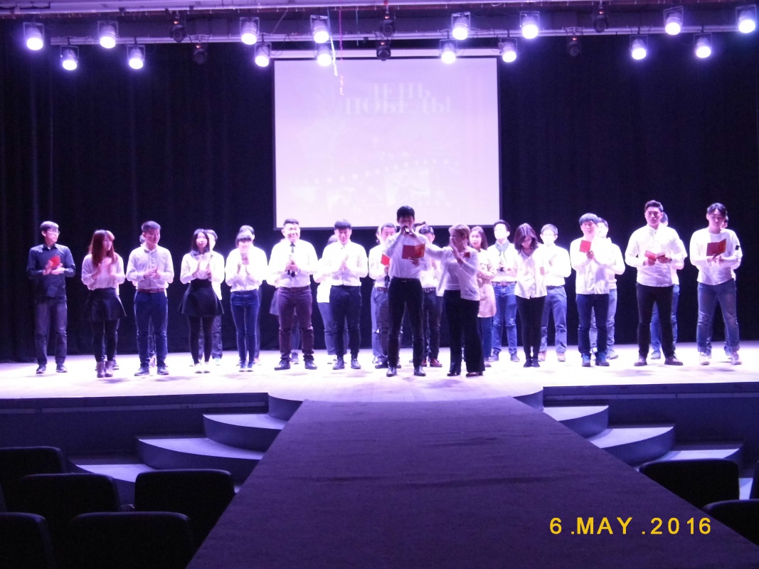 6 мая в актовом зале главного корпуса иностранные учащиеся БГУ отметили своими выступлениями приближение великого для России - дня Победы.