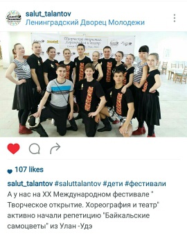 В конкурсе приняли участие хореографические и театральные коллективы с разных уголков России и даже с Республики Беларусь, Казахстан, Молдова. Из Республики Бурятия в конкурсе принял участие студенческий ансамбль песни и танца Бурятского государственного университета "Байкальские самоцветы", который стал лауреатом I степени в номинации "Народный танец" старшая возрастная группа, удостоился диплома за лучшие костюмы и руководитель коллектива Кушнарева Ирина Александровна получила диплом лучшего балетмейстера. В конкурсе было представлено четыре номинации, в двух из которых одержал победу ансамбль песни и танца "Байкальские самоцветы" Республика Бурятия.