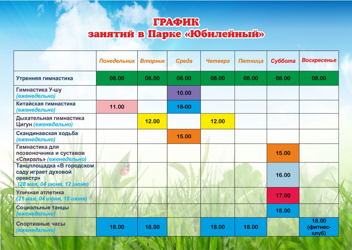 Городской центр здоровья приглашает преподавателей, сотрудников, студентов принять участие в оздоровительных мероприятиях в парке «Юбилейный».
