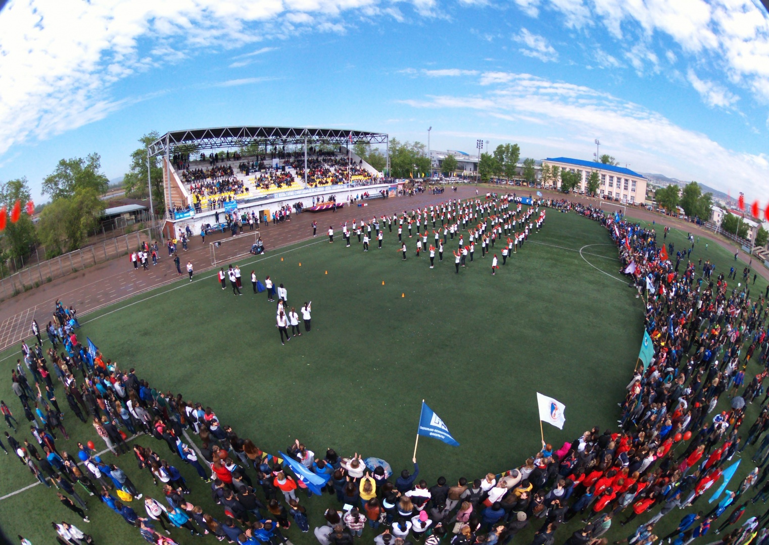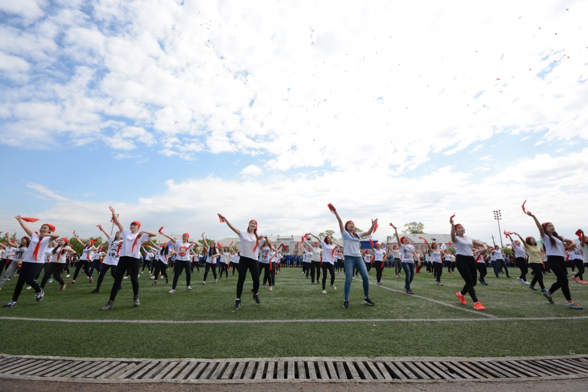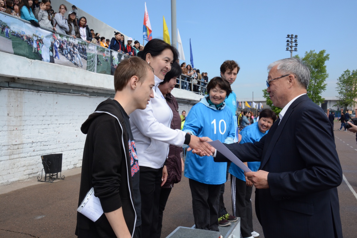 Замечательную атмосферу праздника спорта и здоровья создали творческие концертные номера студентов университета. Показали прекрасное выступление юные спортсмены от Федерации акробатики и спортивной гимнастики Бурятии.