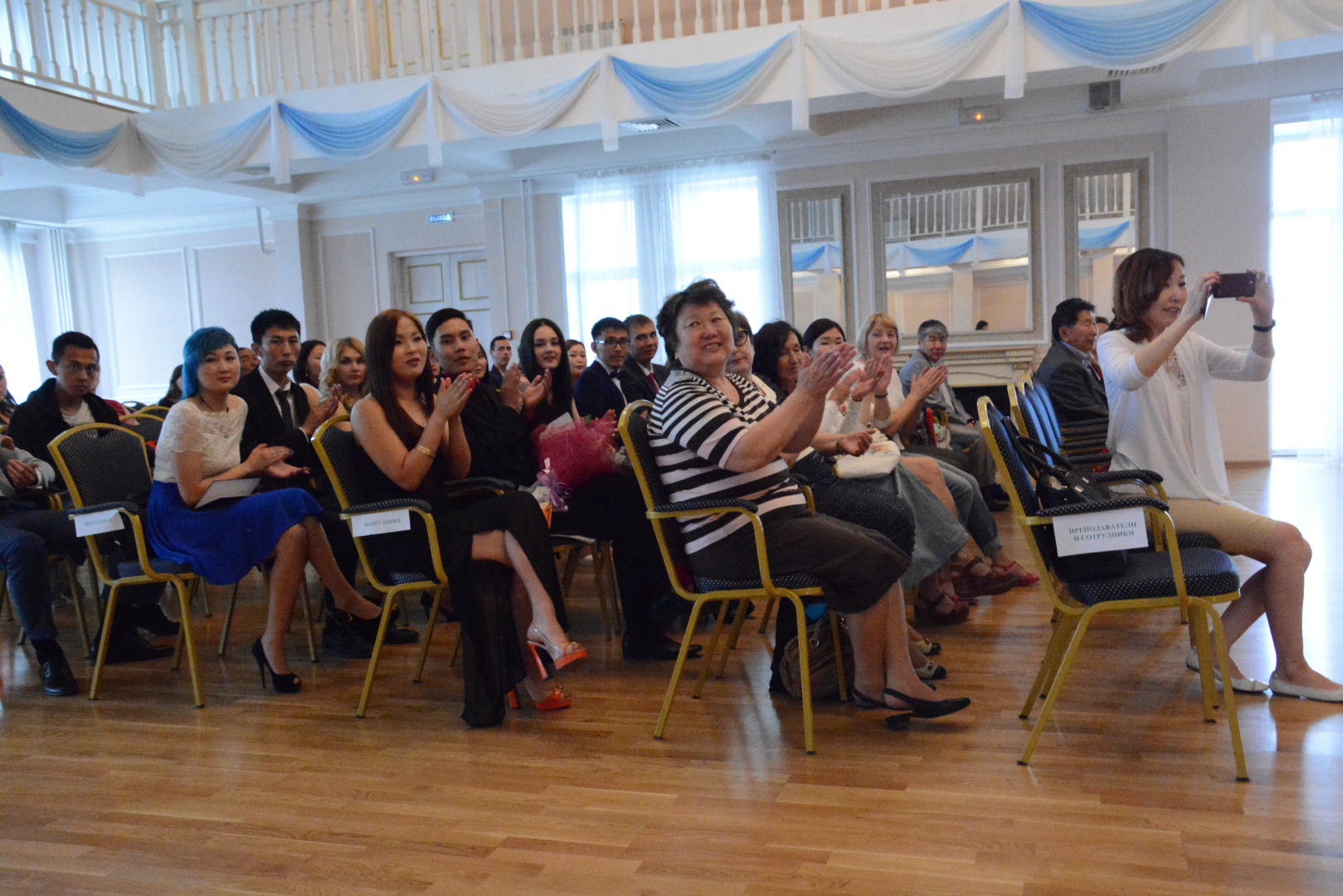 На церемонии присутствовали руководство университета и факультета, преподаватели, гости и многочисленные родители дорогих выпускников. Было сказано много напутственных теплых слов.
