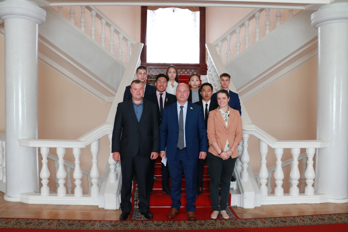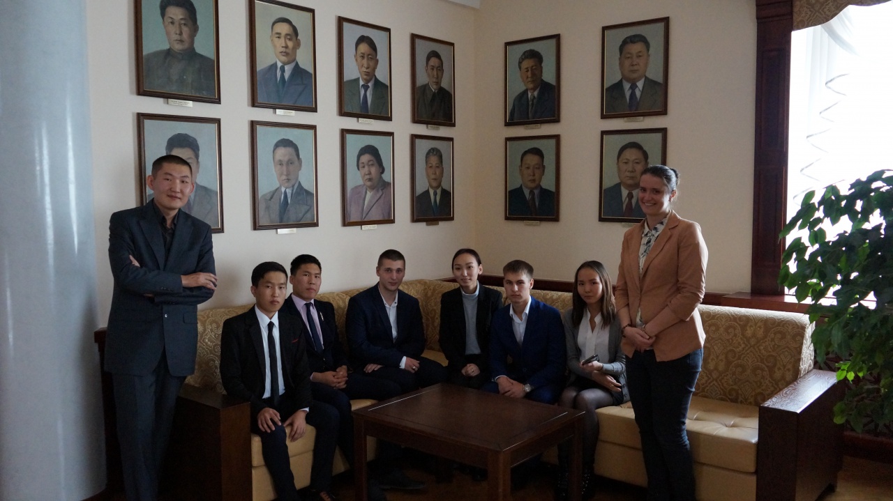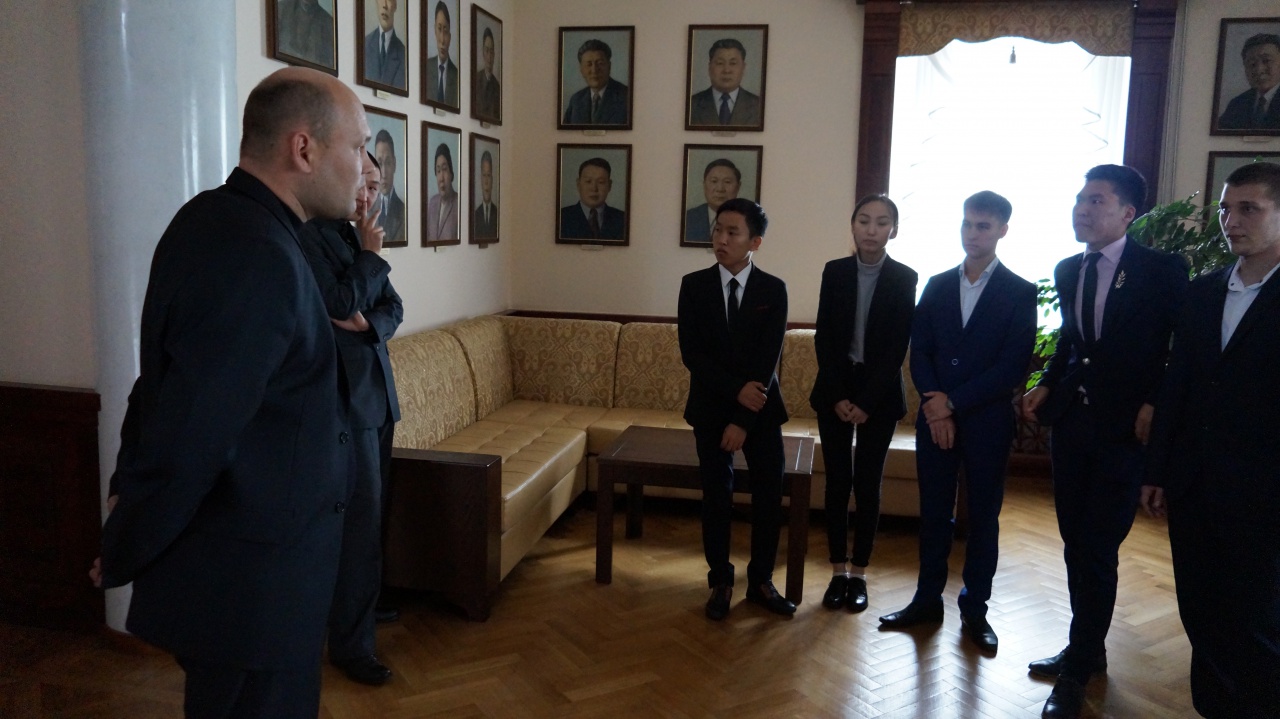 6 сентября студенты - политологи первого курса посетили Народный Хурал РБ, где их встретили недавние выпускники кафедры политологии и социологии Исторического факультета - Халбашкеев Андрей Валентинович, главный специалист отдела по работе со СМИ Аппарата НХ РБ и Скосырский Сергей Иванович, консультант Комитета НХ РБ по государственному устройству, МСУ, законности и вопросам государственной службы, которые провели ознакомительную экскурсию для своих младших коллег, познакомили ребят с депутатами НХ и рассказали о специфике работы законодательной ветви власти региона. В рамках экскурсии студенты воочию смогли понаблюдать за работой парламентариев, посетив внеочередную сессию Народного Хурала и даже получили домашнее задание от мэра г. Улан-Удэ.