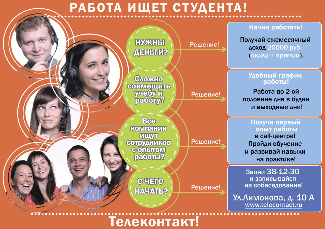 В ООО «Телеконтакт» требуются специалисты в отдел продаж без опыта работы. Заработная плата до 21000 руб (оклад +премия).