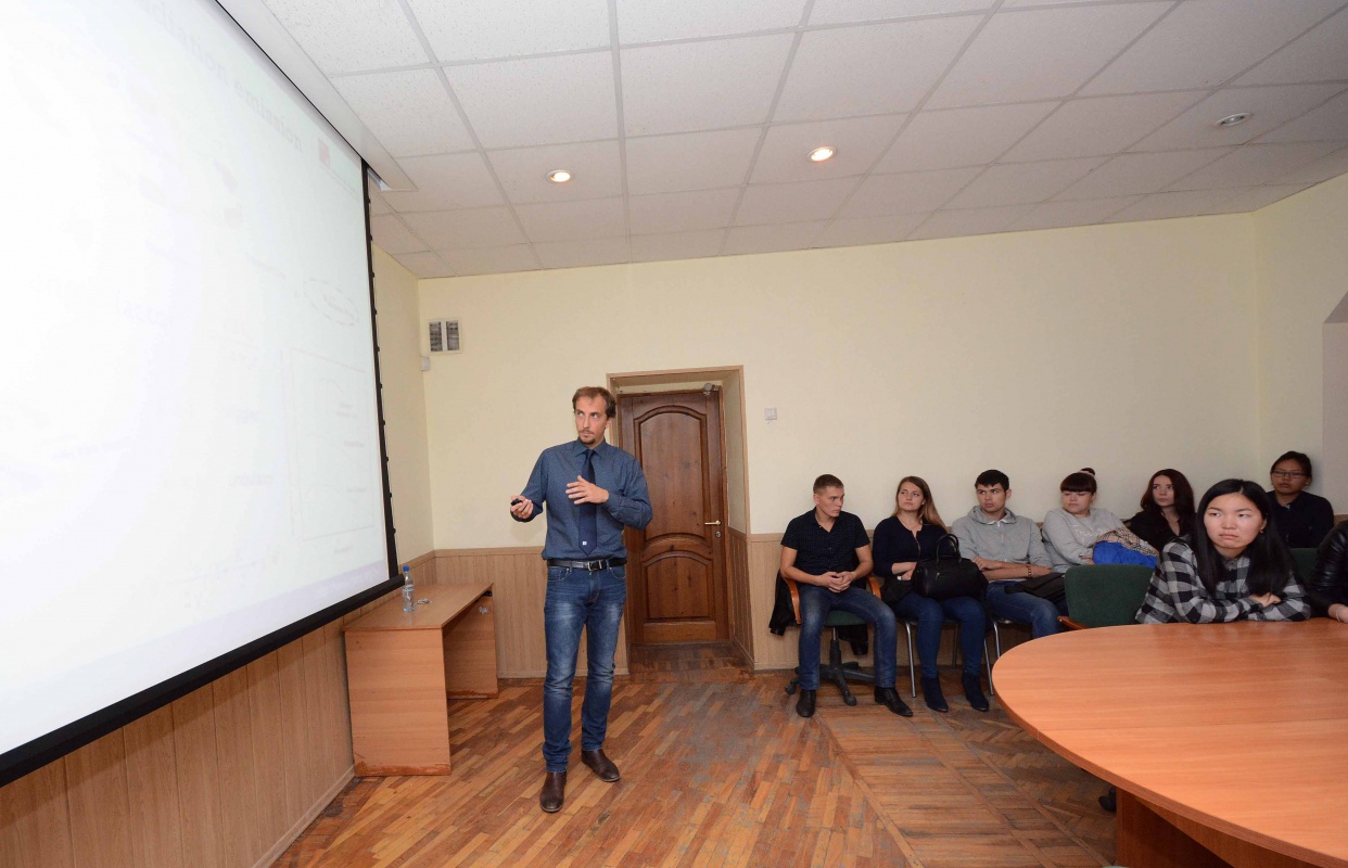 Студенты ФТФ и ИФиМК в день рождения БГУ получили хороший подарок. 30 сентября состоялись лекция Ф.Прессако (доктор физики, сотрудник DESY, г. Гамбург) и семинар У.Яжиновой-Прессако (докторантка Института славистики Берлинского университета, г. Берлин).