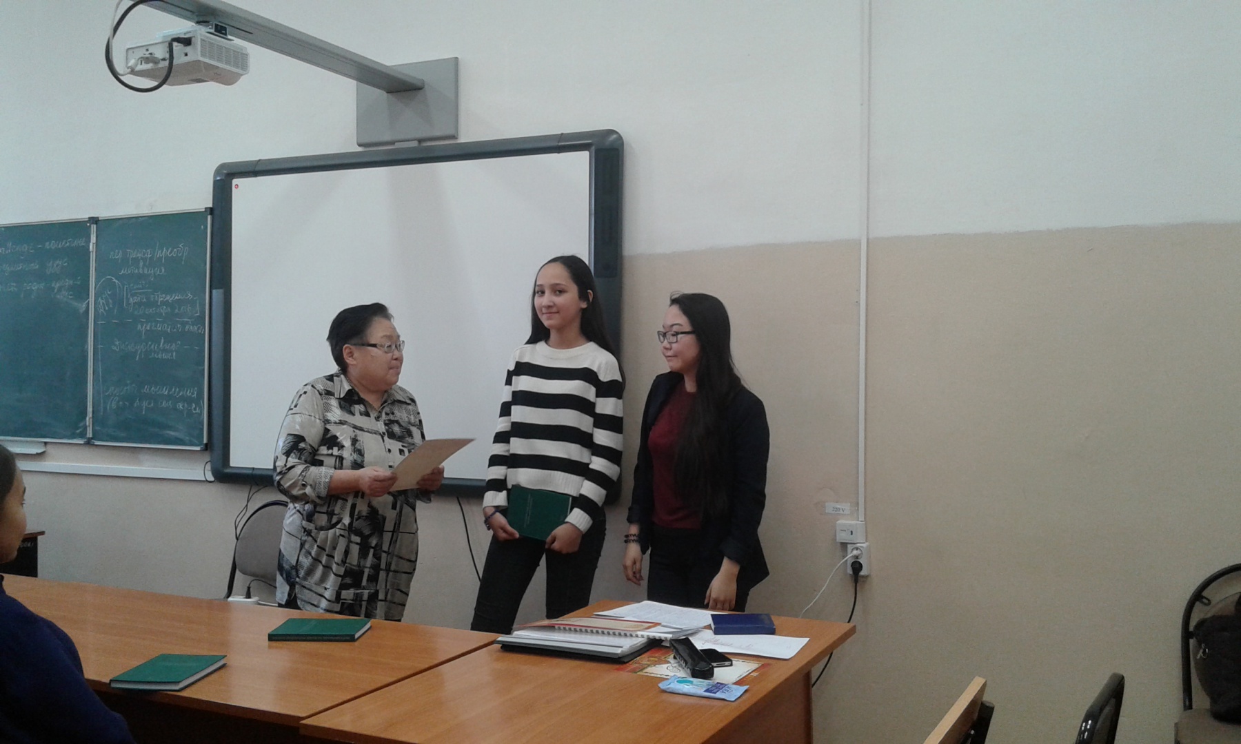 31 октября 2016 г. магистранты гр. 18252м по направлению подготовки «Зарубежная филология» (рук. д.ф.н., проф. Доржиева Г.С.) кафедры немецкого и французского языков ИФМК БГУ провели семинар-исследование «Английский язык в современном мире» с учащимися 9 класса МАОУ «Гимназия № 33 г. Улан-Удэ» (учитель англ. яз. Бальжирова М.В.), организованный в рамках магистерской производственной практики и профориентационной деятельности кафедры. Учащиеся представили доклады на различные темы, выполненные под руководством магистрантов: «Псевдонимы британских/американских политиков и деятелей культуры», «Семиотический код шотландского национального костюма», «Гастрономические традиции в британской и американской национальных культурах», «История английского чая и чайной традиции» и др. Лучшие доклады отмечены грамотами и поощрительными призами, другим докладчикам вручены благодарности за активное участие в исследовательской работе.